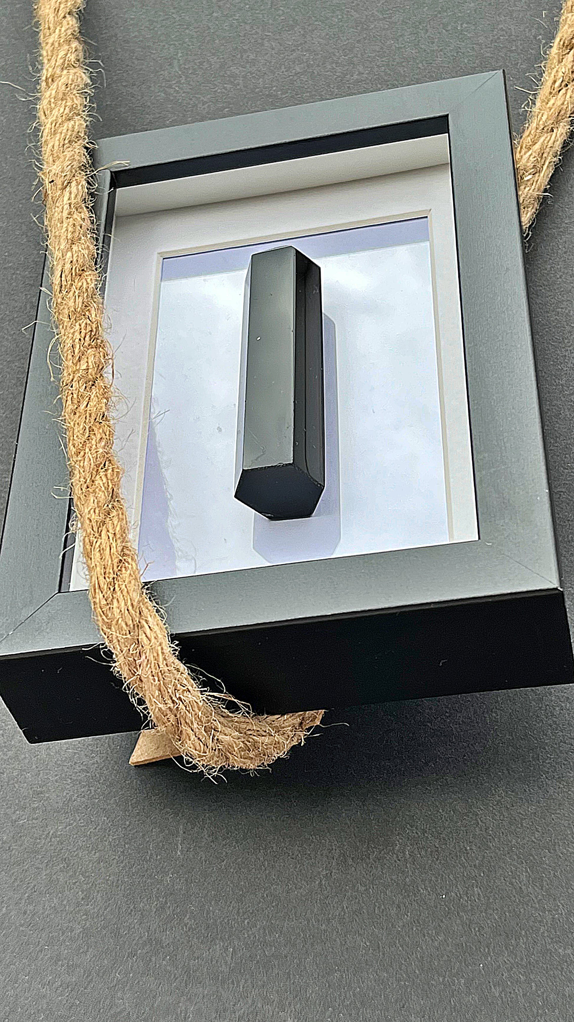 Sleek, polished, and designed to stand out — this Natural Obsidian Tower is framed in deep matte black to create a striking modern display piece. The glossy black crystal paired with the sharp lines of the frame makes this the perfect accent for refined, minimal interiors.